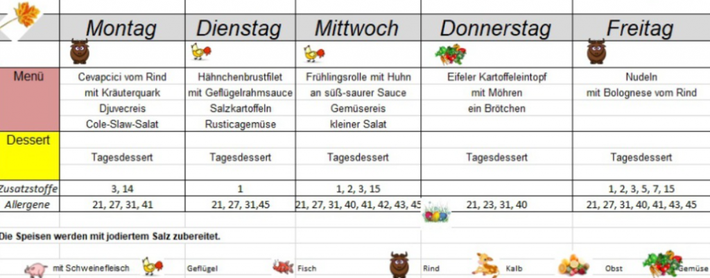 Der Speiseplan ist abwechslungsreich und wird von der Firma Troservice geliefert.
